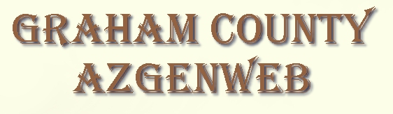 County Coordinator: Jean Walker State Coordinator: Colleen Pustola Asst. State Coordinator: Shannon Lanning THIS WEBSITE IS NO LONGER BEING UPDATED. PLEASE BOOKMARK THE NEW WEBSITE ADDRESS AT https://azgenwebgraham.com. Welcome to the Graham County, AZGenWeb site. This site is for genealogy and historical research. Please do not email about real estate needs, etc..... We are not affiliated with any of the County or City Offices. If you are here for genealogy or history of Graham County, then welcome!! I am Jean, your County Coordinator. Please look around, place queries on the query board (little box with the puzzle piece on it), ALWAYS feel free to submit your family histories, group sheets, or pictures. This site grows from researchers donating. This way you are helping other researchers, and you may find a distant cousin or two or three......... NOTE: I cannot do local research, as I do not live in Graham County, Arizona. I also do not have anyone's family history. Please do NOT email asking for your family history or what information I have for your family, what you see here is what I have.