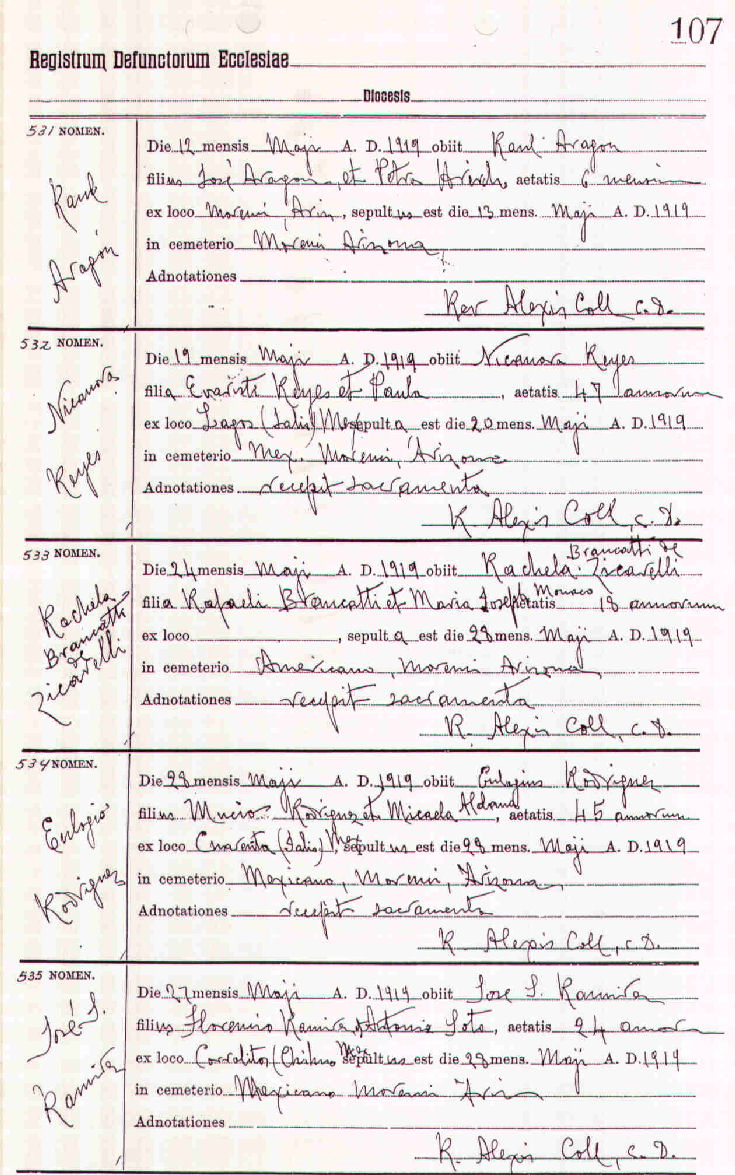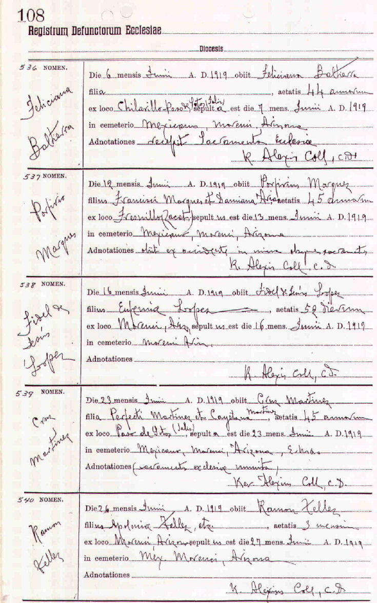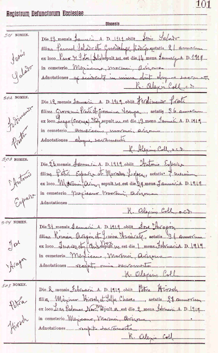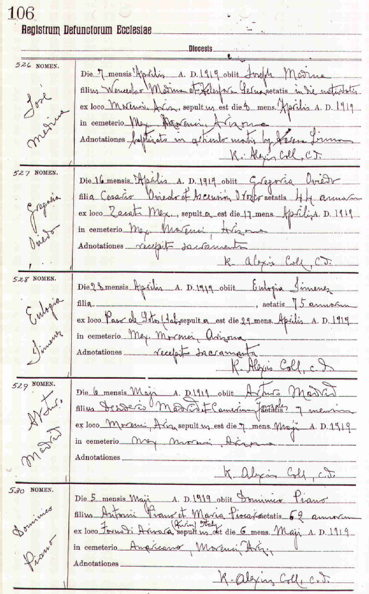 106 Medina Jose Wenseslas Medina & Morenci, AZ 7-Apr-19 8-Apr-19 * Mexicano