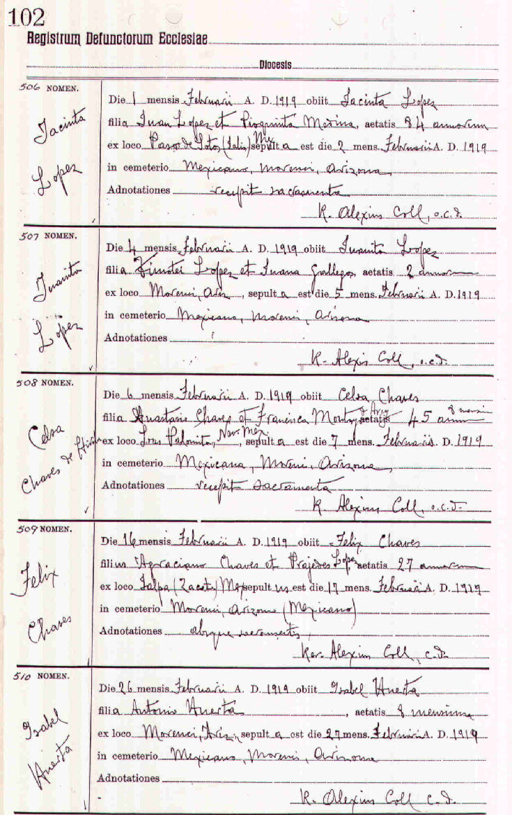 102 Lopez Juanita Timoteo Lopez & Morenci, AZ 4-Feb-19 5-Feb-19 2 years