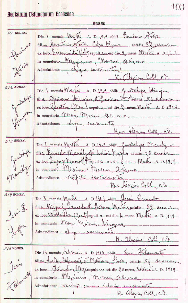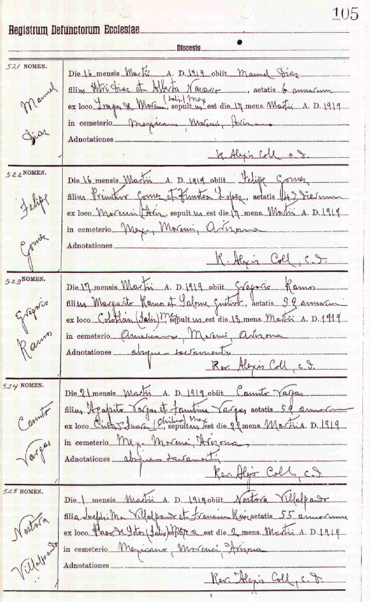Mexicano *recepit Extremem Unctionem *omission: cemetery location