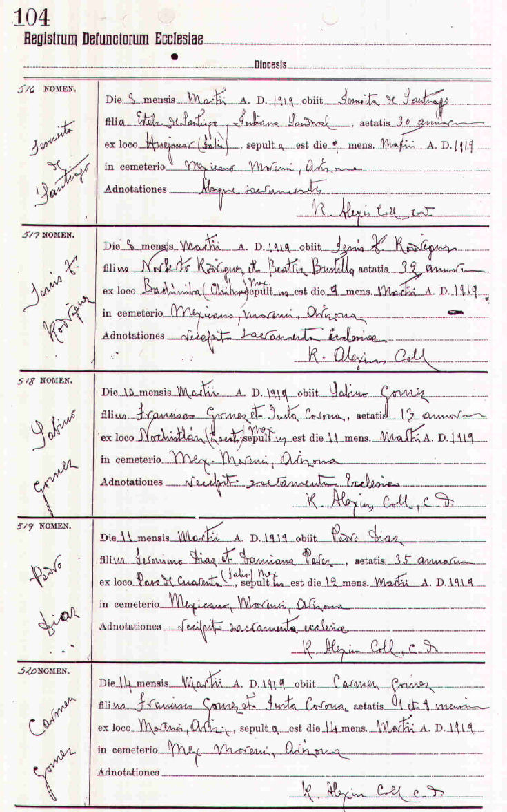 9-Mar-19 30 years Mexicano * absque ? Sacramentis * without sacraments