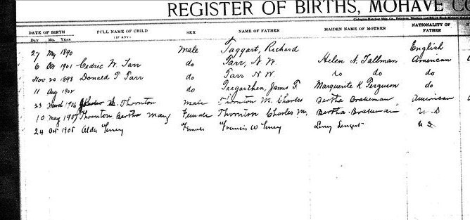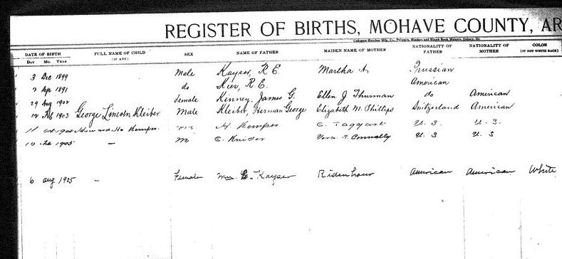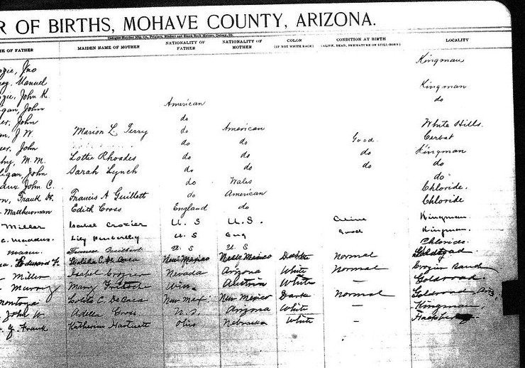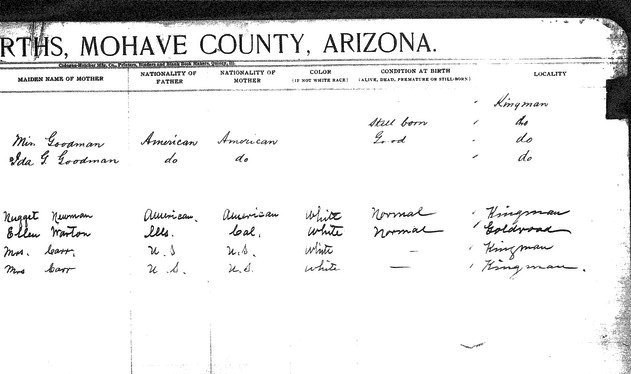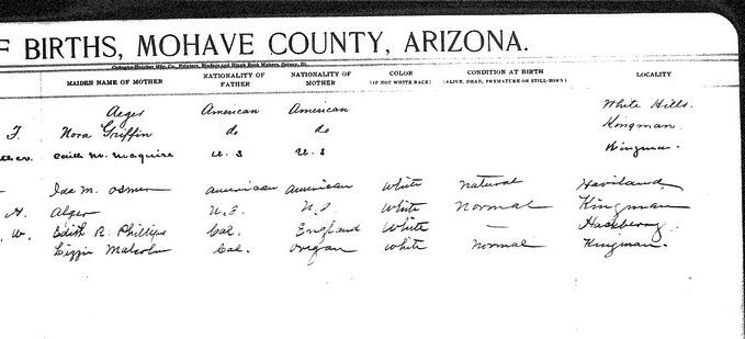 Crozier, __ - born 30 Aug 1911 in Valentine, Mohave, to Kate Crozier