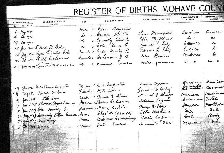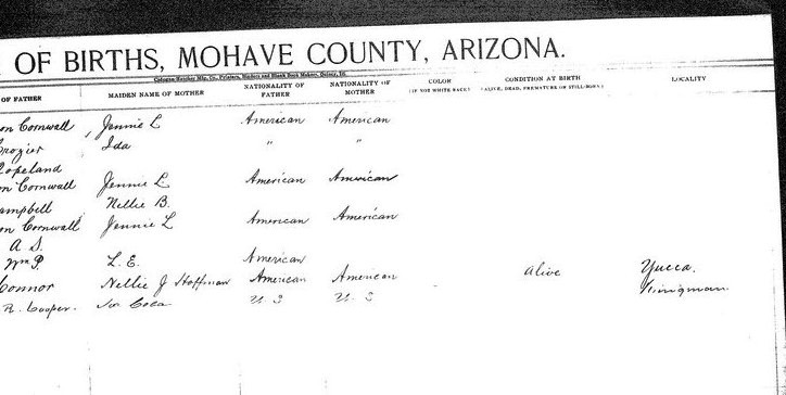 Cowley, __ - born 26 Jun 1913 in Yucca, Mohave, to William James Cowley and Florence B Floyd