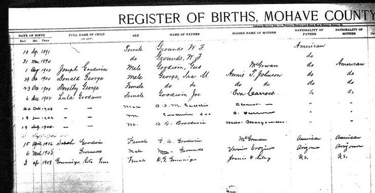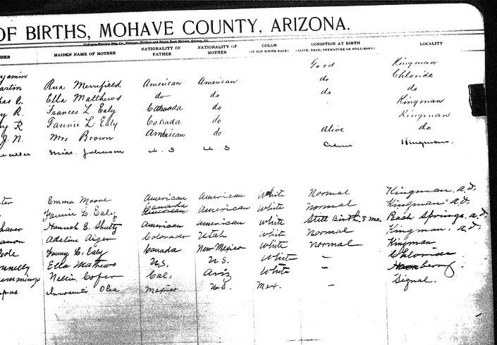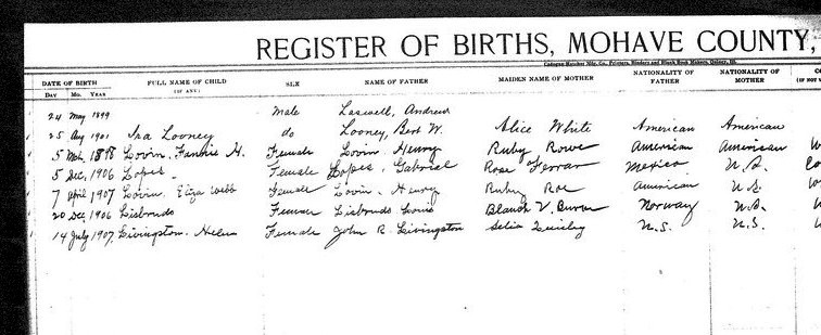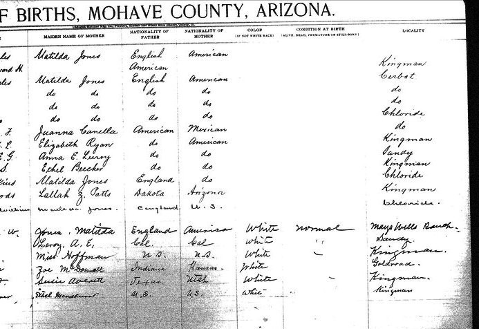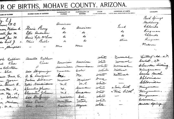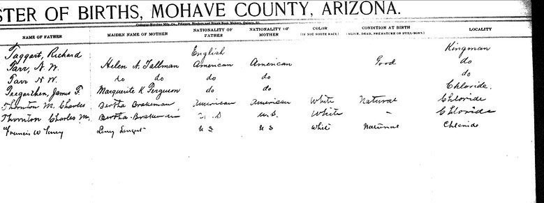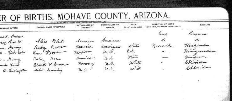 Contributed 2025 Aug 9 by Norma Hass, compiled from FamilySearch.org index records for Arizona, Birth Certificates, 1909-1917 Collection, where more records, more information, and record images are available.