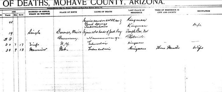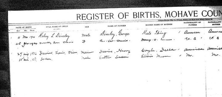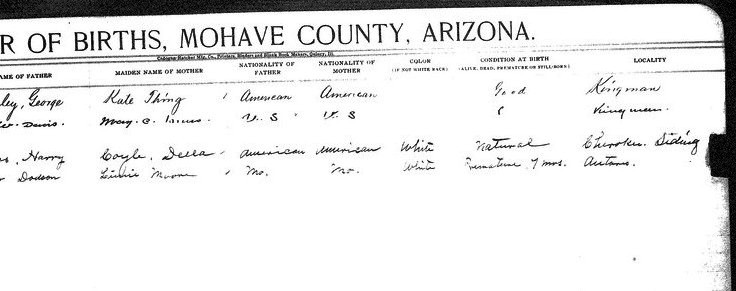 Davis, John Wyatt - born 4 Jan 1913 in Kingman, Mohave, to May Inn and Geo W Davis