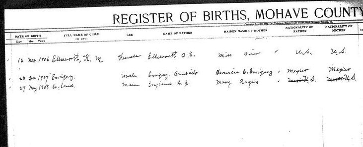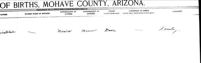 Banchez, Maria - born 20 May 1915 in Yucca, Mohave, to Maria Ortez and Clemente Banchez