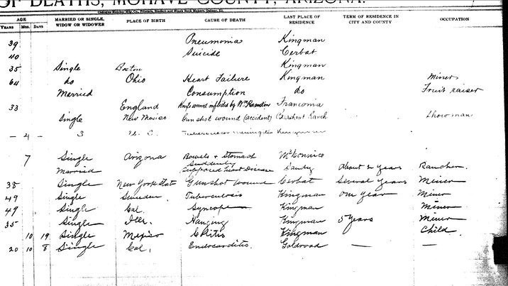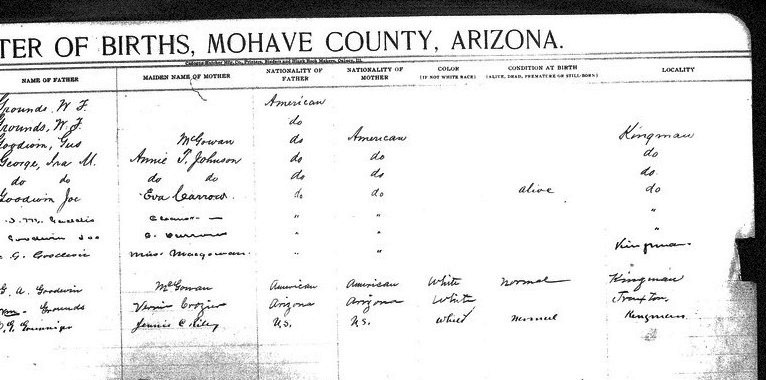 Sullivan, Virgina May - born 9 May 1917 in Oatman, Mohave, to Machael R Sullivan and Julia Hartnett