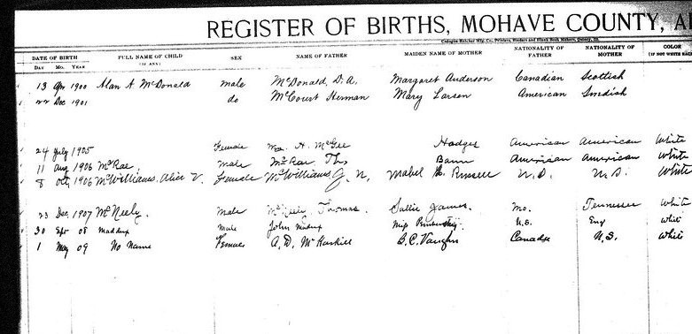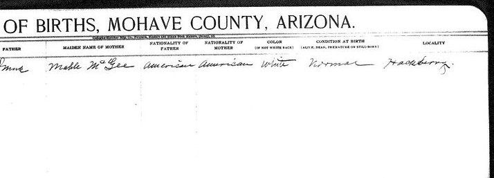 Bland, __ - born 2 Dec 1913 in Kingman, Mohave, to Thomas Jefferson Bland and Elsie Lucretia McGee