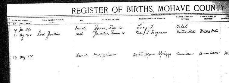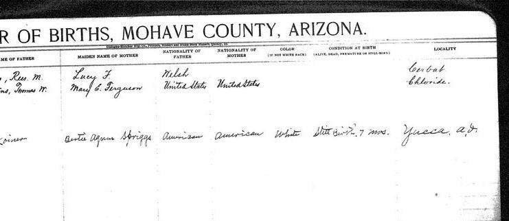 Starkey, __ - born 25 Jan 1914 in Kingman, Mohave, to James Walter Starkey and Lucy Wilkins