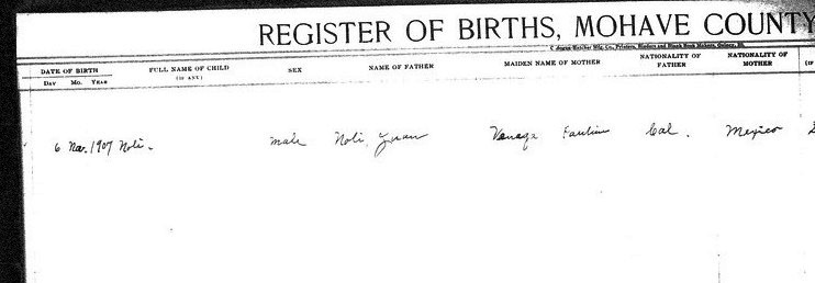 Banegas, Jessis - born 28 Nov 1912 in Kingman, Mohave, to Felis Banegas and Gladys Headley