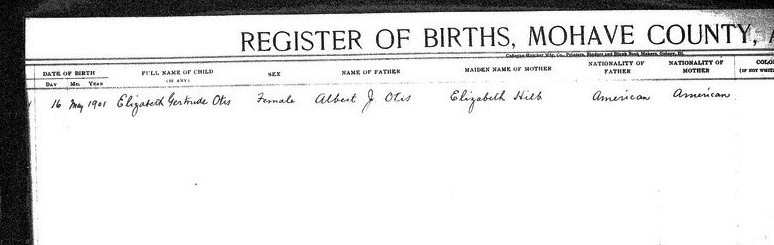 Davis, Lila May - born 26 Dec 1914 in Kingman, Mohave, to Mary Eleanor Imus and George Wyatt Davis