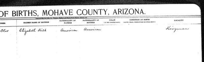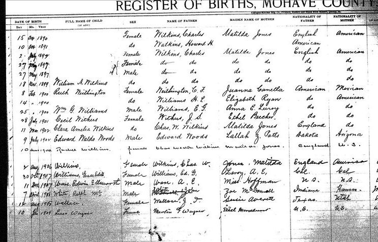Wilkinson, __ - born 14 Nov 1910 in Kingman, Mohave, to Merle G Wilkinson and Rena Dibble