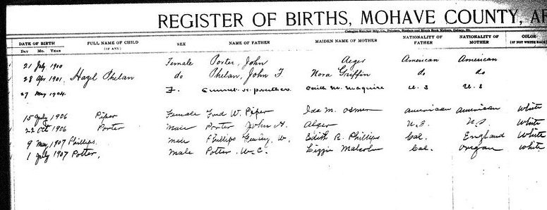 Warren, Guy Ellsworth - born 29 Dec 1910 in Topock, Mohave, to Nellie A Bailey and E N Warren