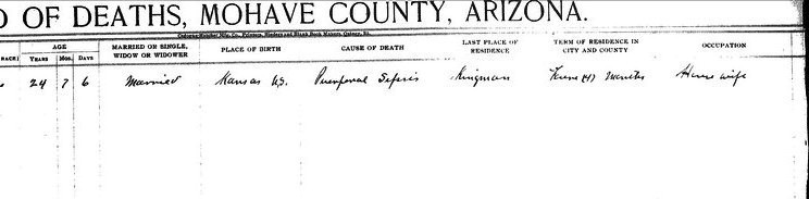 Richardson, Mary Stella - born 2 Nov 1914 in Kingman, Mohave, to Ira Leroy Cooper Richardson and Bertha Alice Prince
