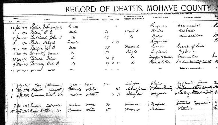 Perino, Foma - born 19 Jun 1913 in Goldroad, Mohave, to Maria Molinan and Lewis Perino