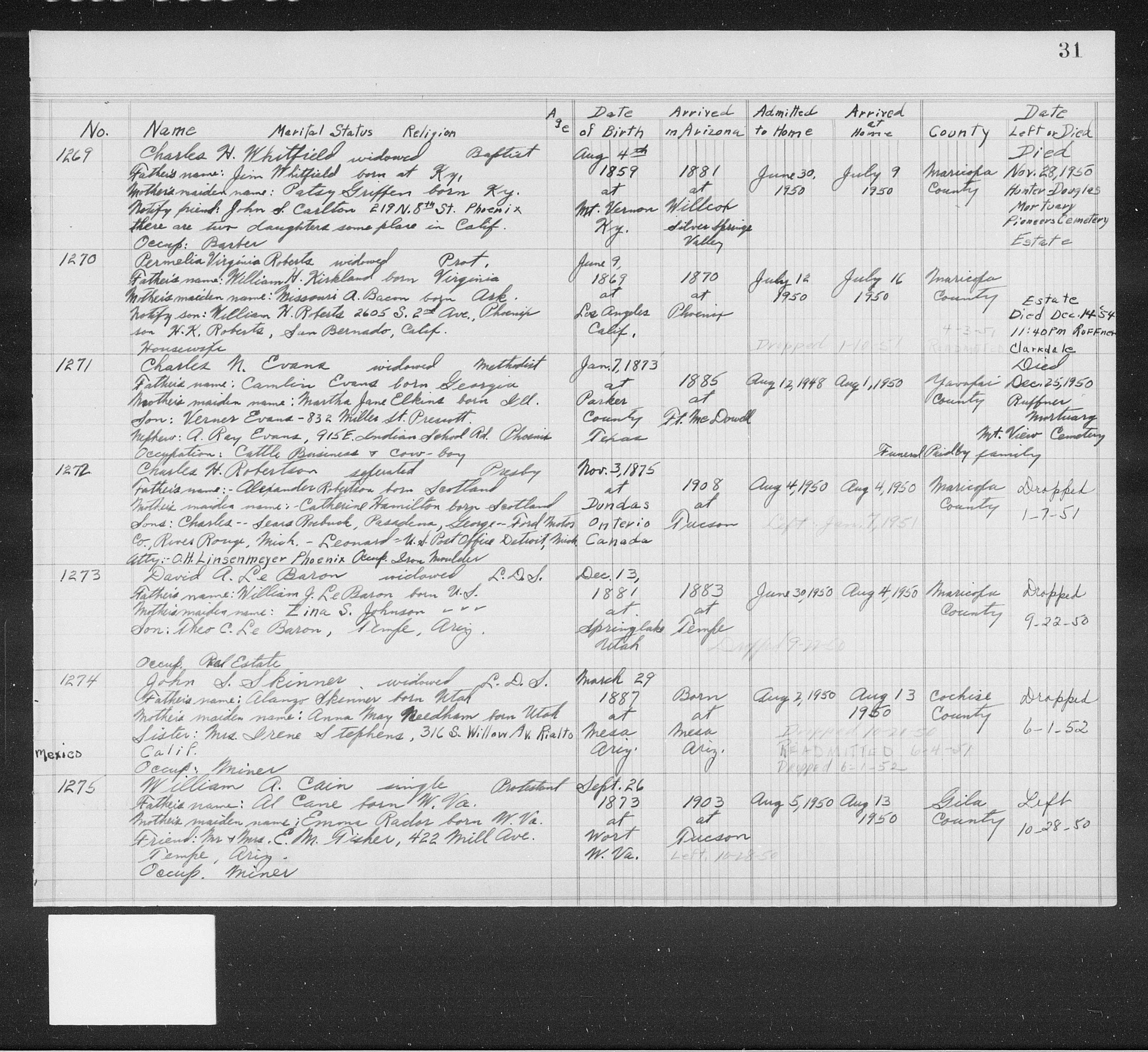 Prescott's Pioneer Home A B C D E F G H I J K L M N O P R S T U V W Y Z This sample page from Prescott's Pioneer Home Register Book shows the